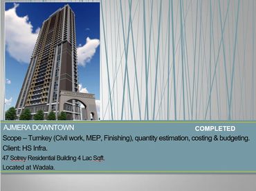 We are construction engineering & project management firm with experience of over 10+ years in commercial, residential building projects. We have excellent experience of over a decade in Civil contracts, Quantity surveying, Billing & Estimation, Planning, Structural audits & repairs, interior designing & fit-out.